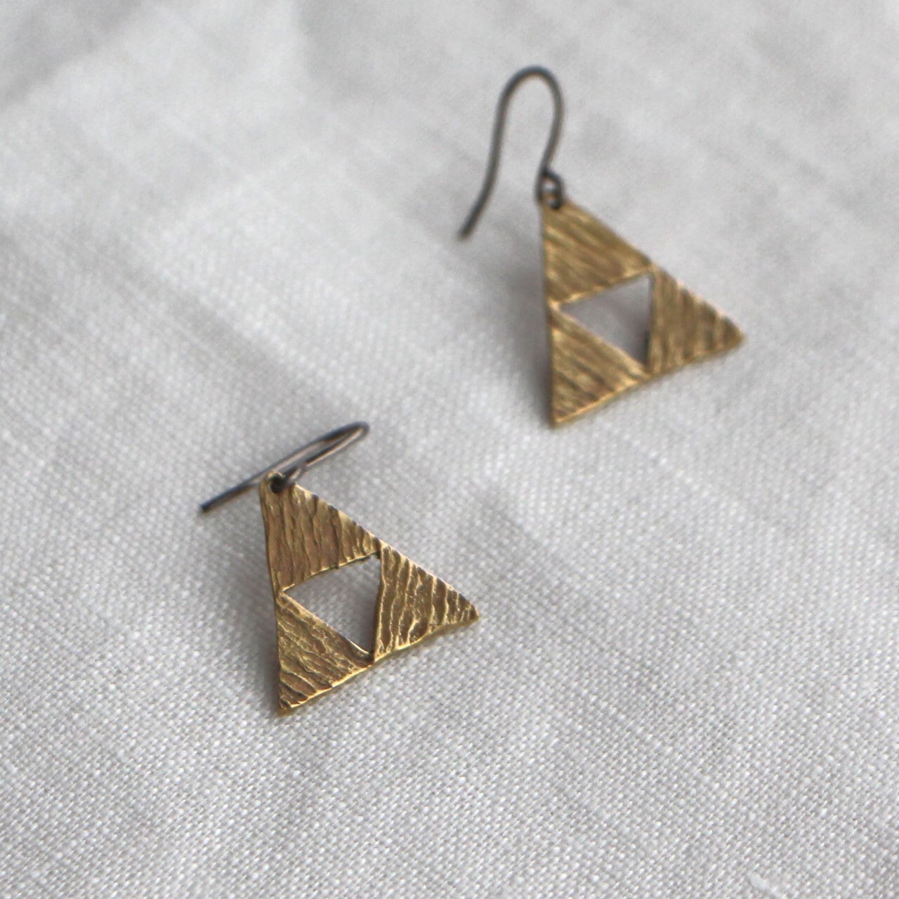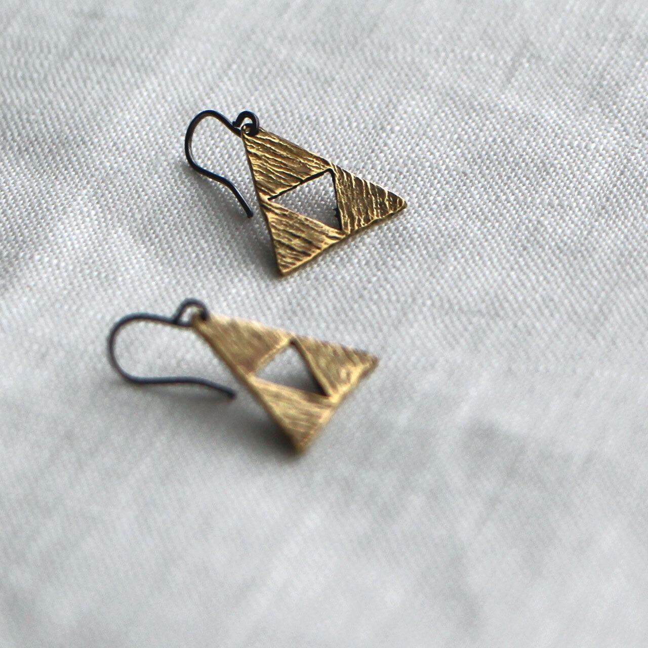 真鍮の三角形の木々を模したピアス